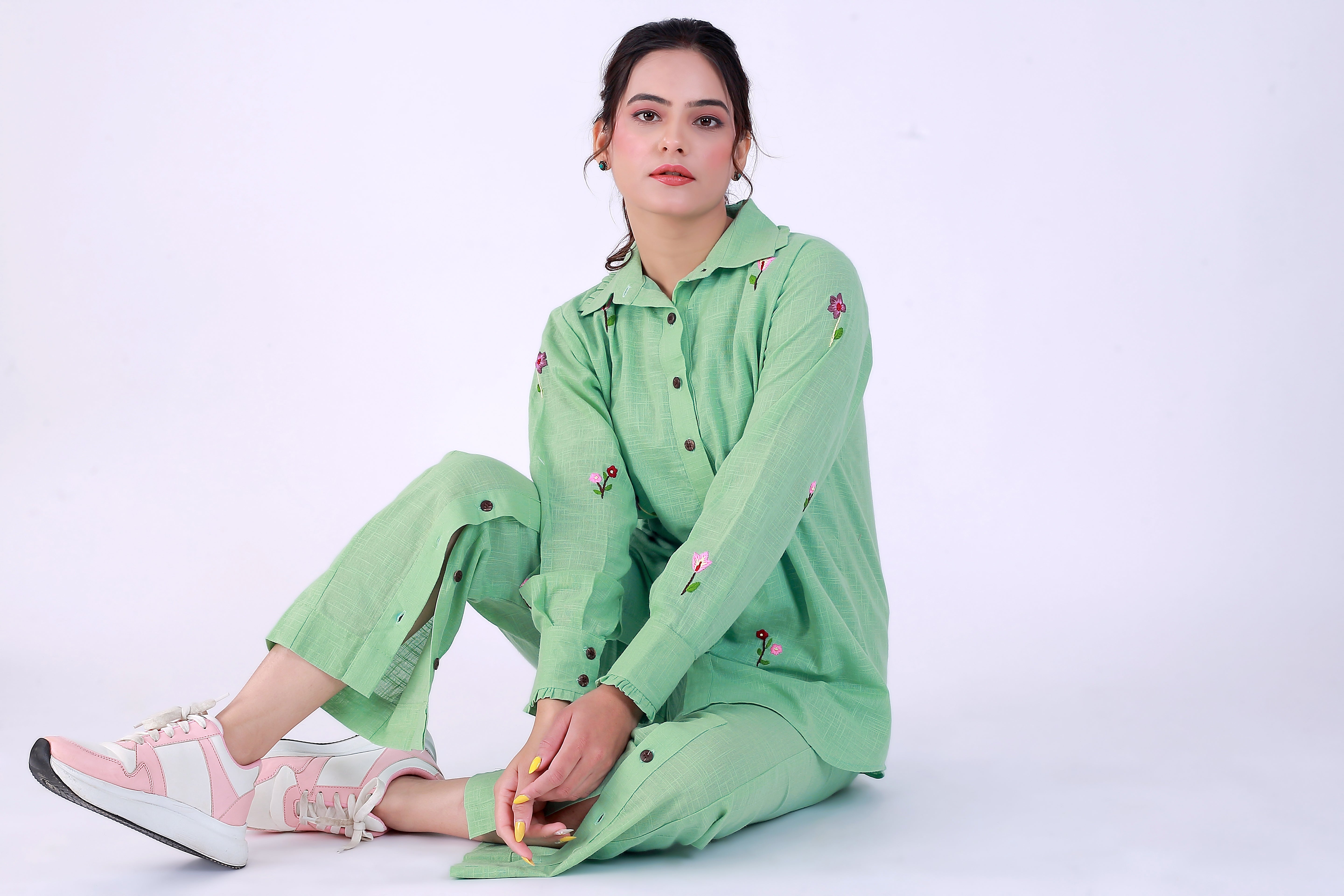 The Baagicha Green Co-ord Set mirrors the design and aesthetic of the orange co-ord set but in a refreshing green... Read more