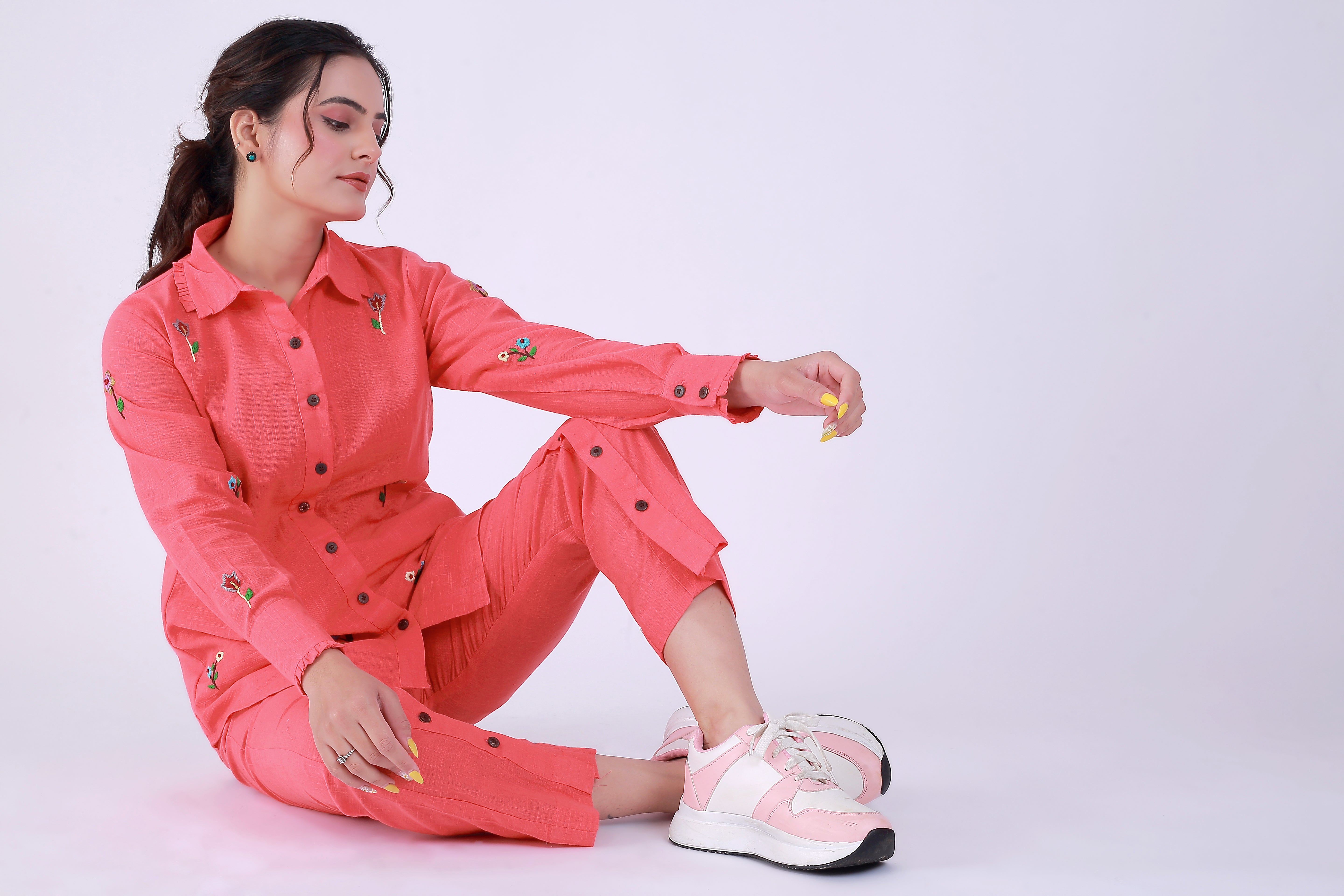 Made from cotton flex fabric, the Baagicha Orange Co-ord Set exudes bohemian charm. The set features delicate hand-thread work that... Read more