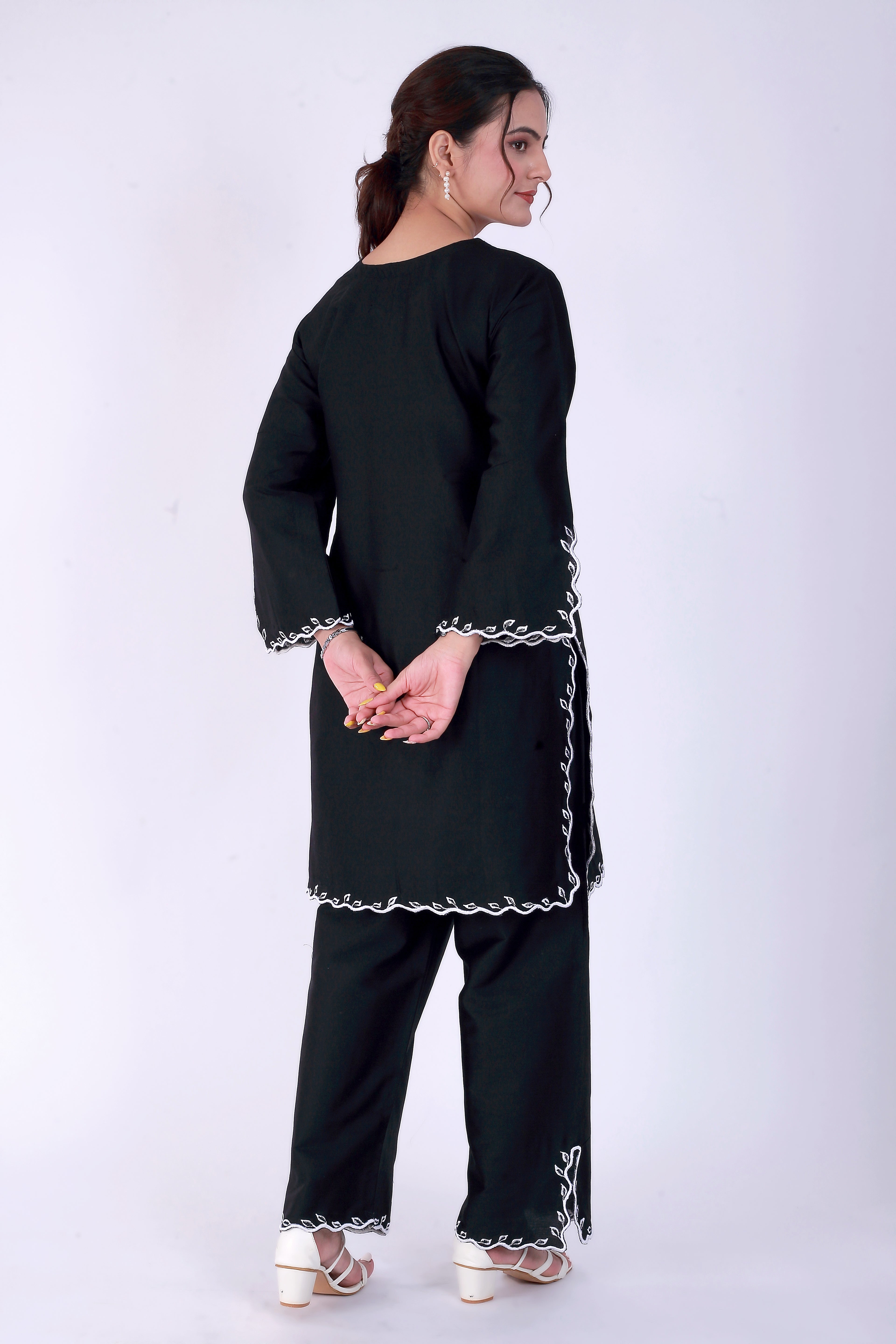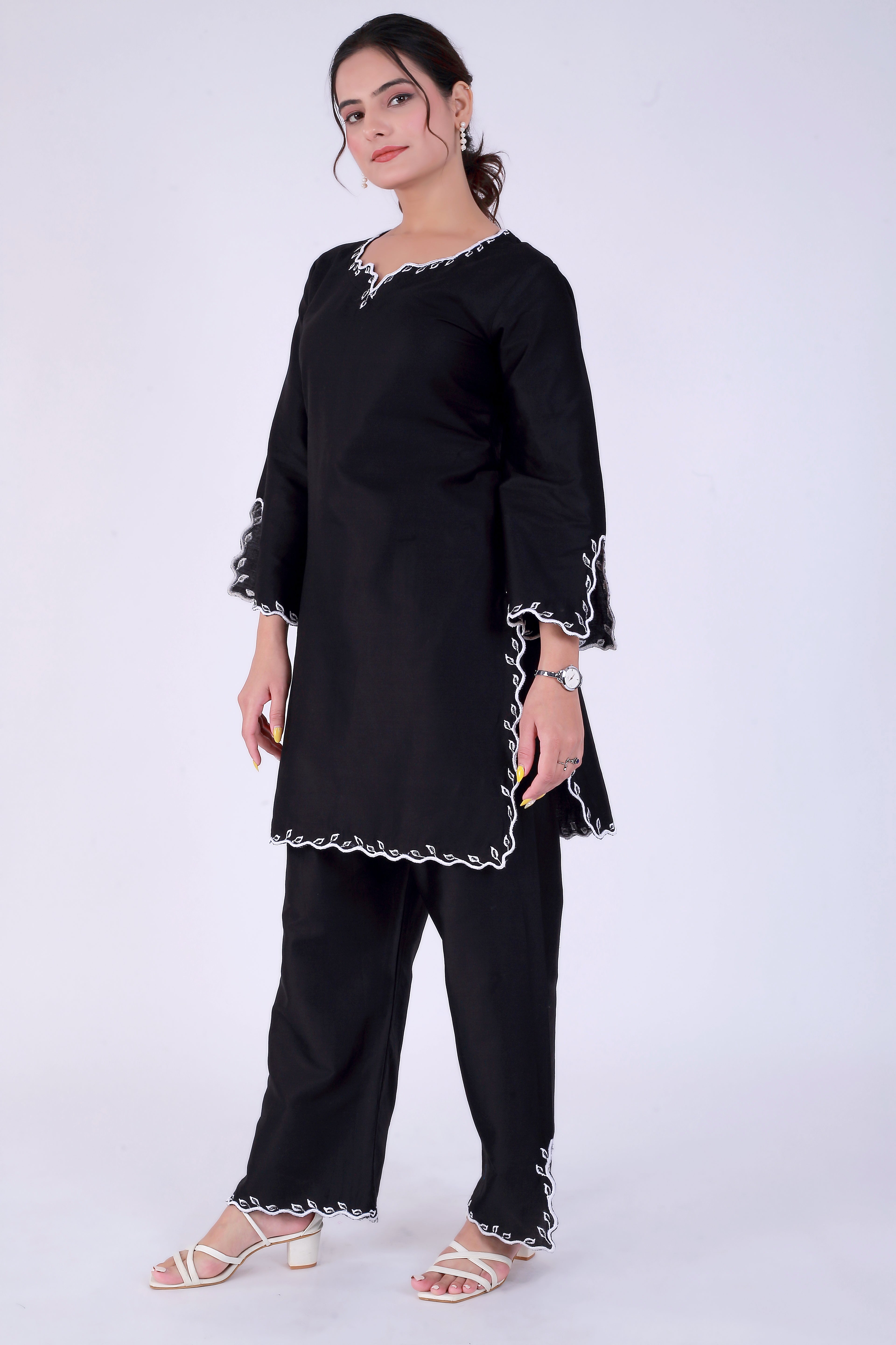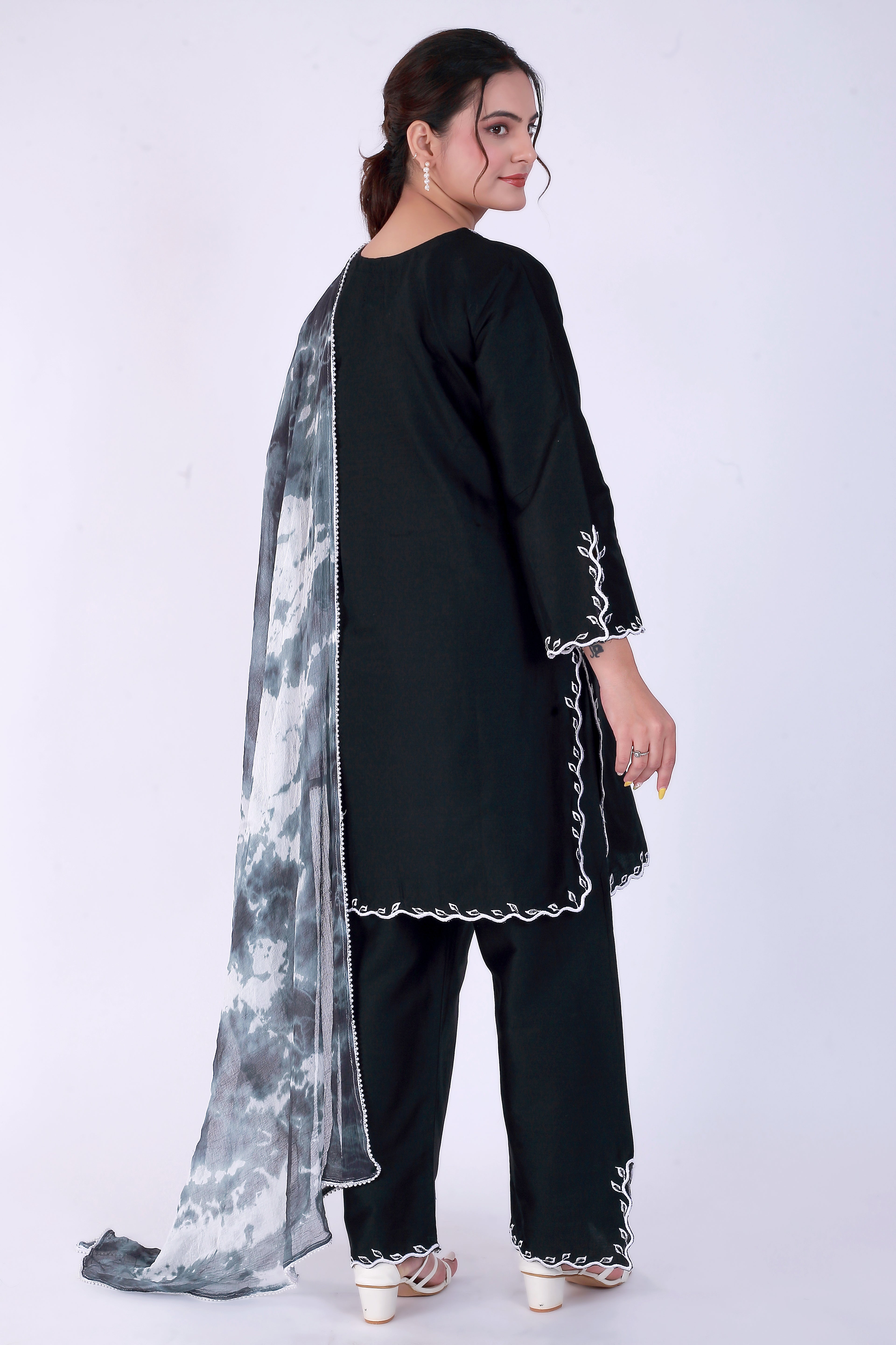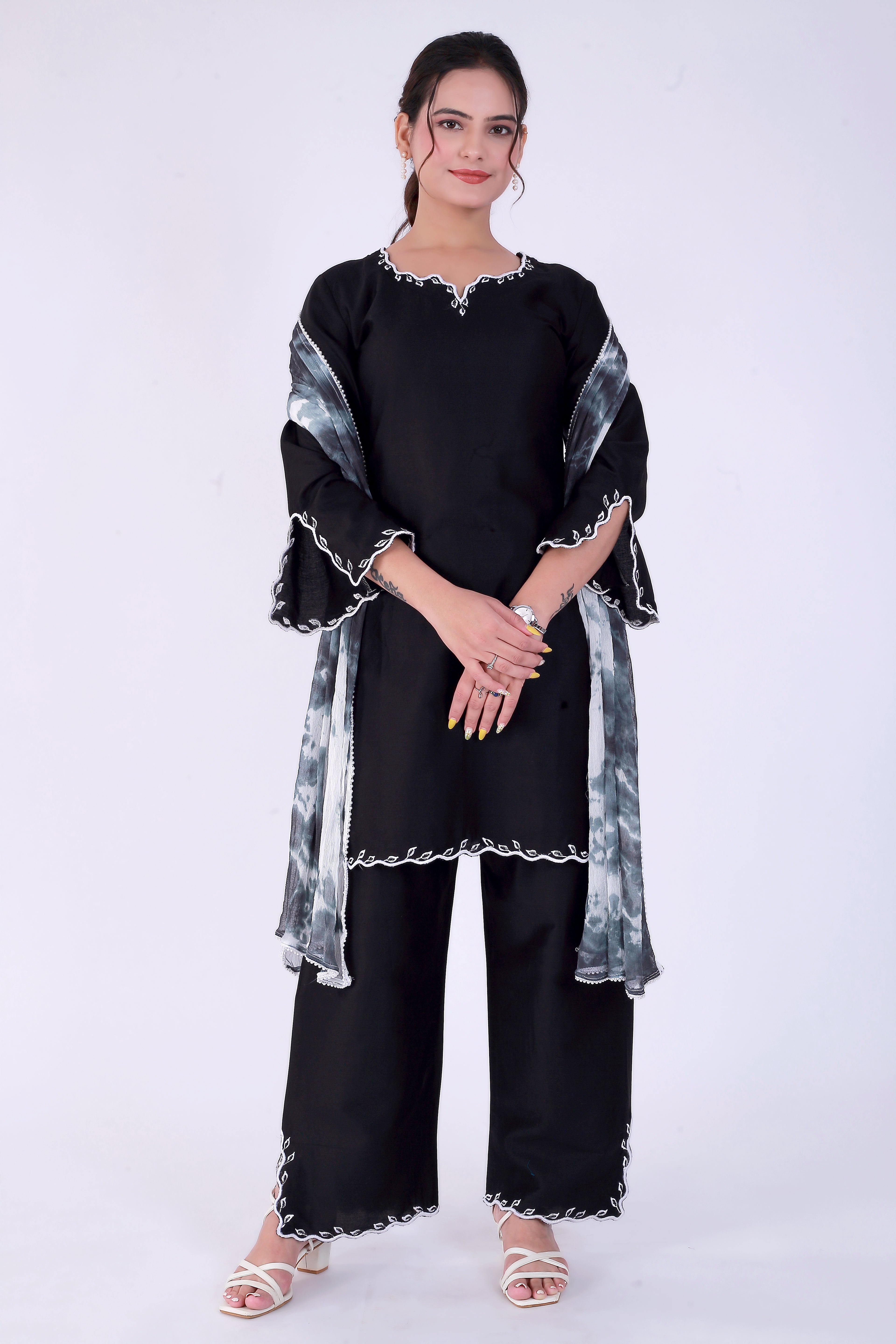 Add a touch of elegance to your ethnic wardrobe with Nirsha Bharat’s Black Tie-Dye Patti Suit Set. Crafted from soft,... Read more