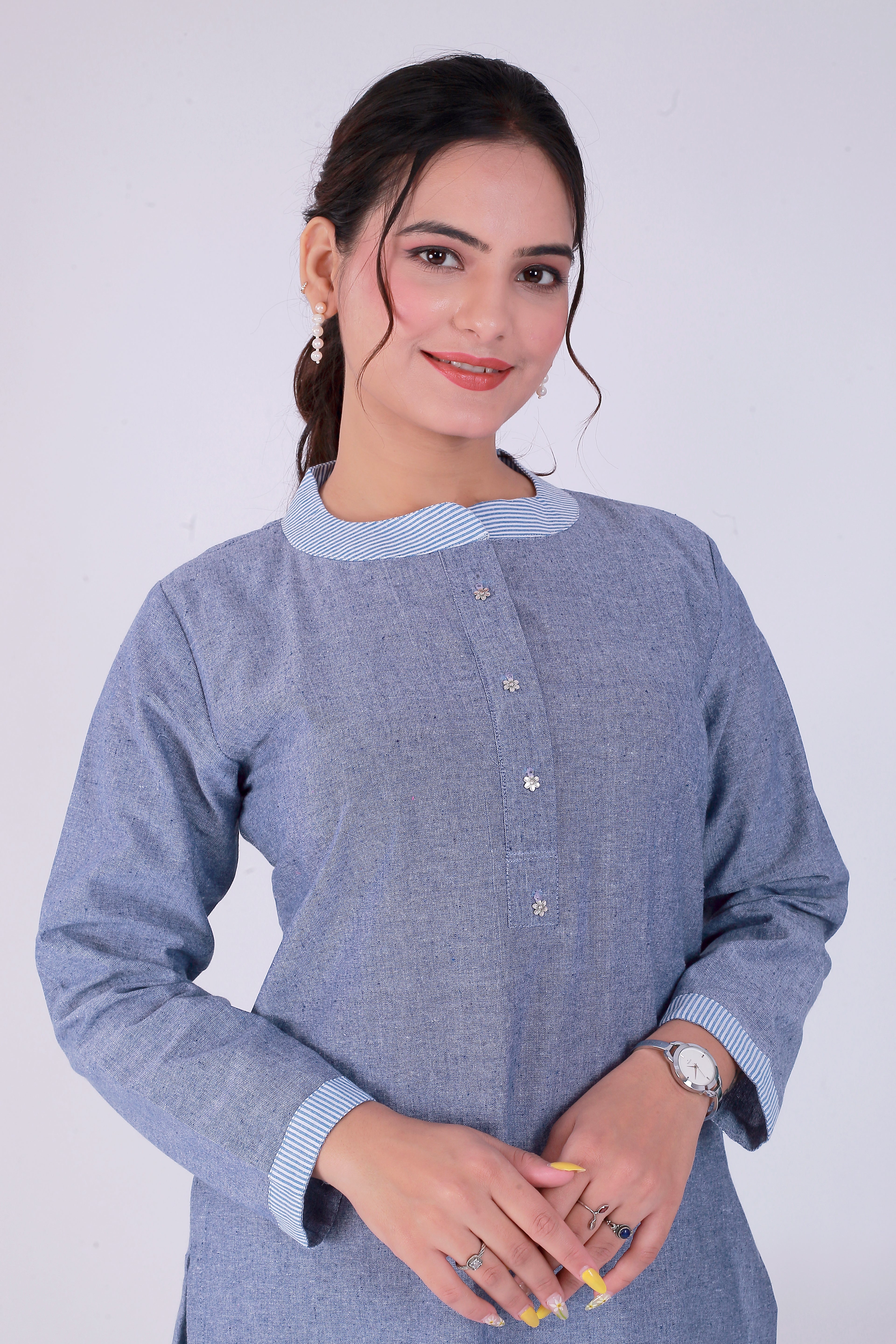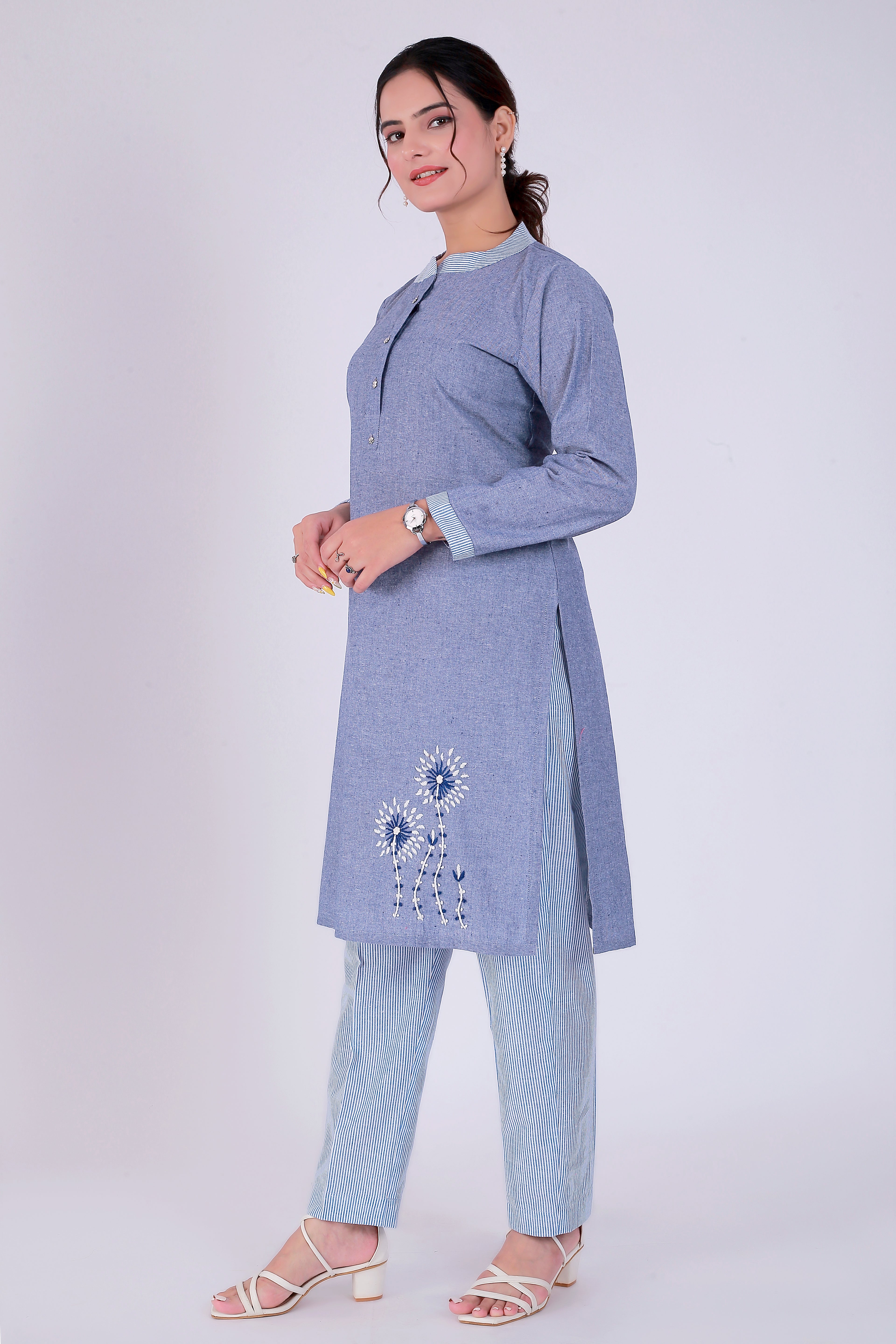 Crafted from soft cotton denim fabric, the Dandelion Kurta Set features intricate hand-done wool work and hand-oxidised buttons that add... Read more