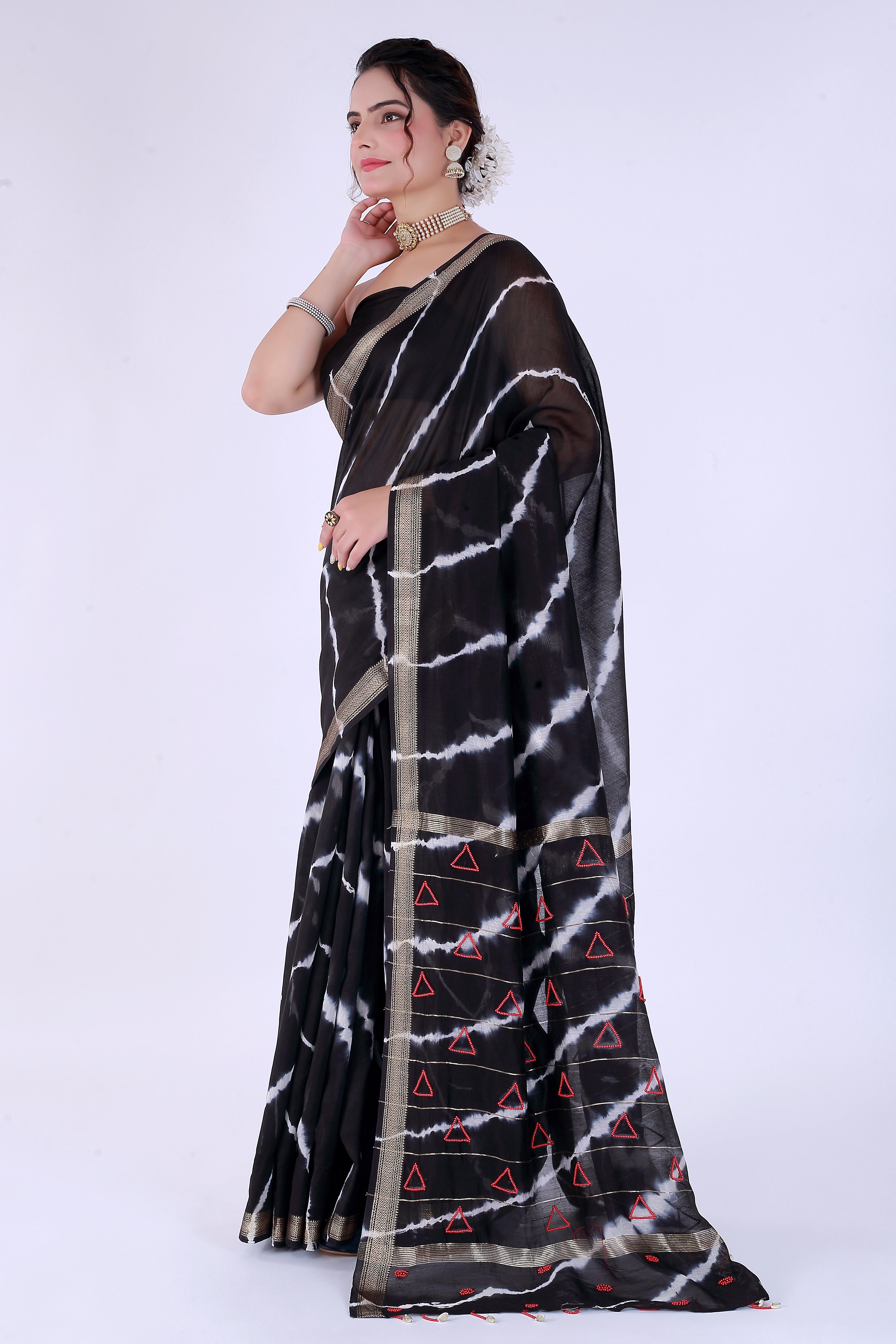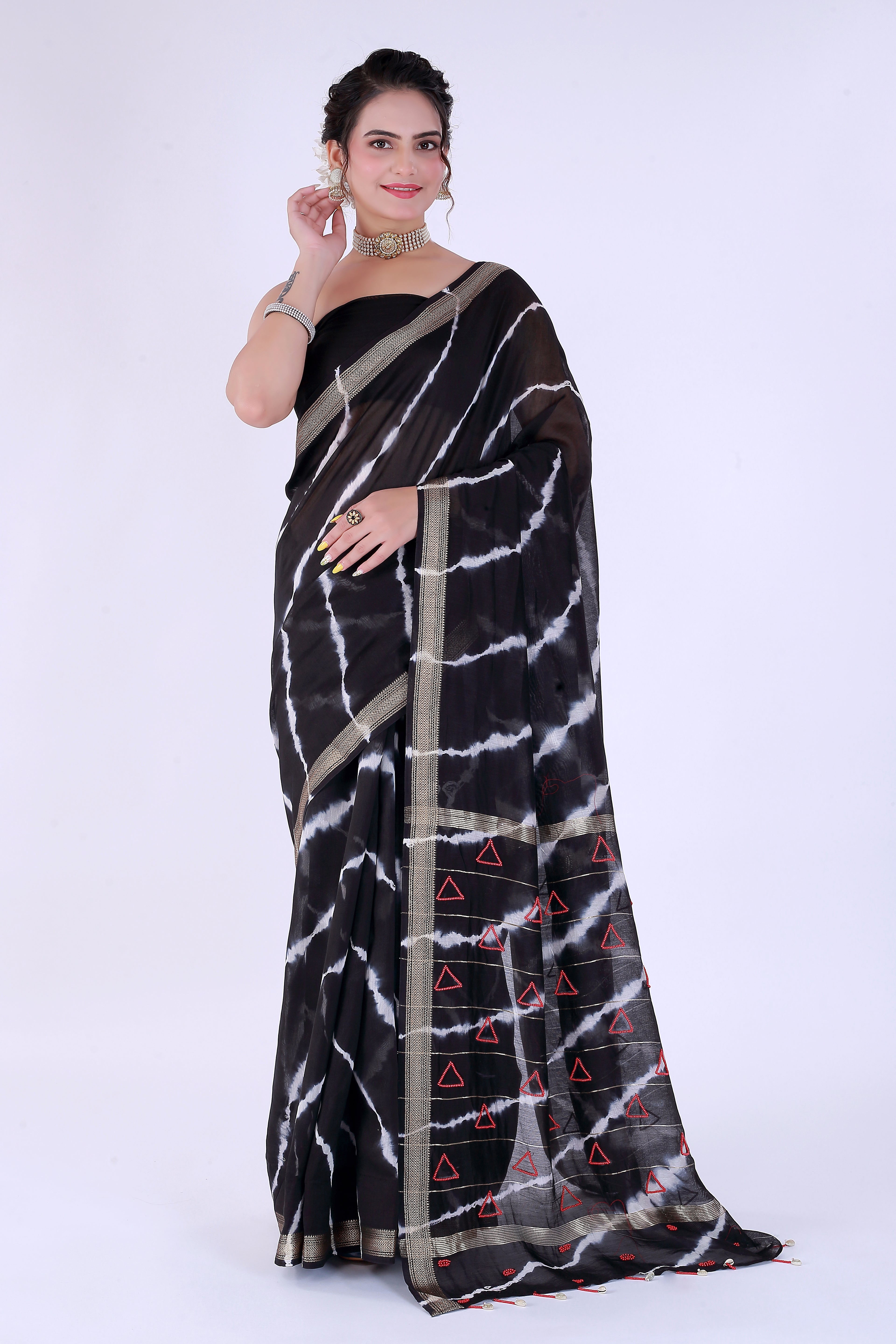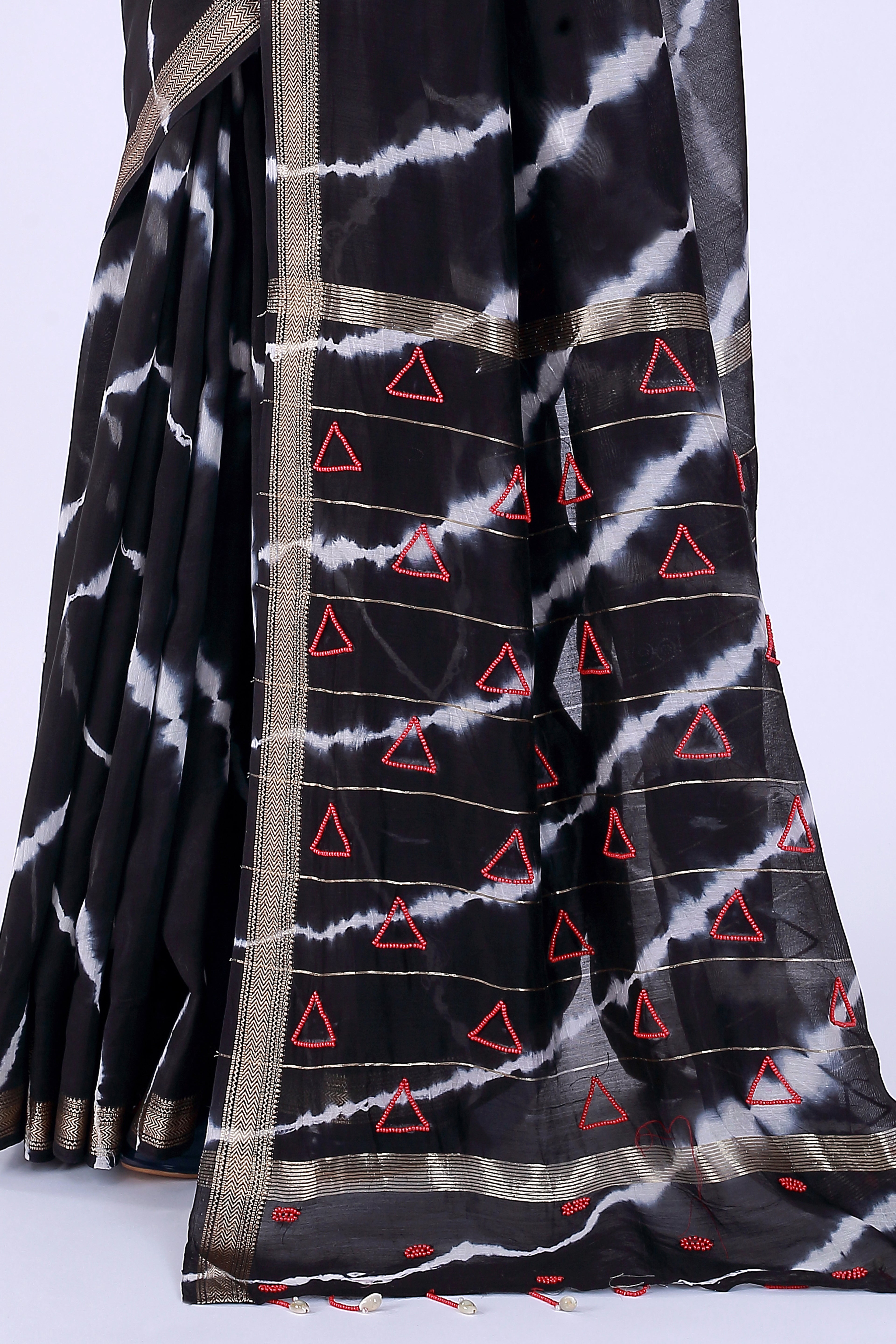 The Trikon saree in black combines classic elegance with modern design. It is made from luxurious fabric, detailed with rich... Read more