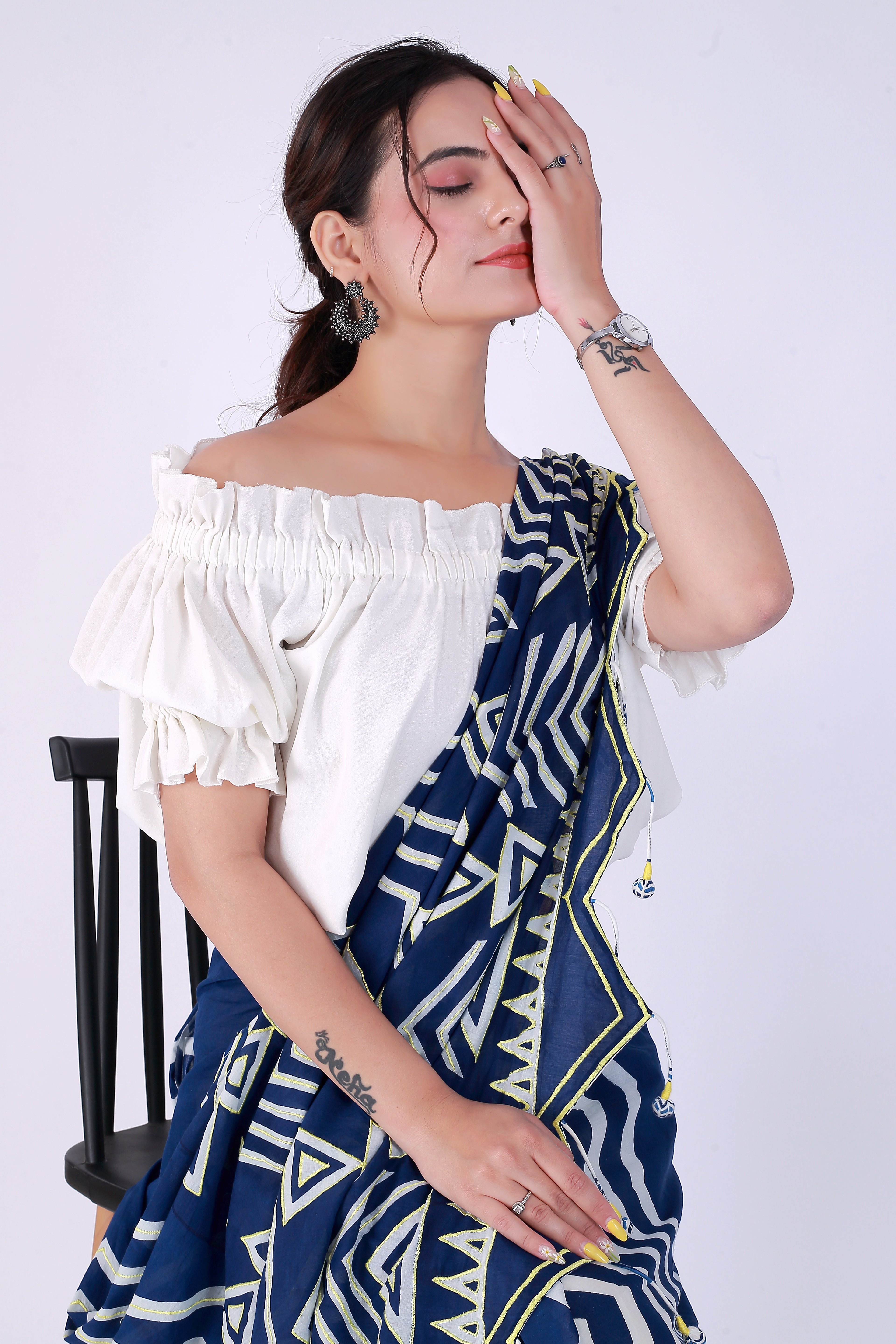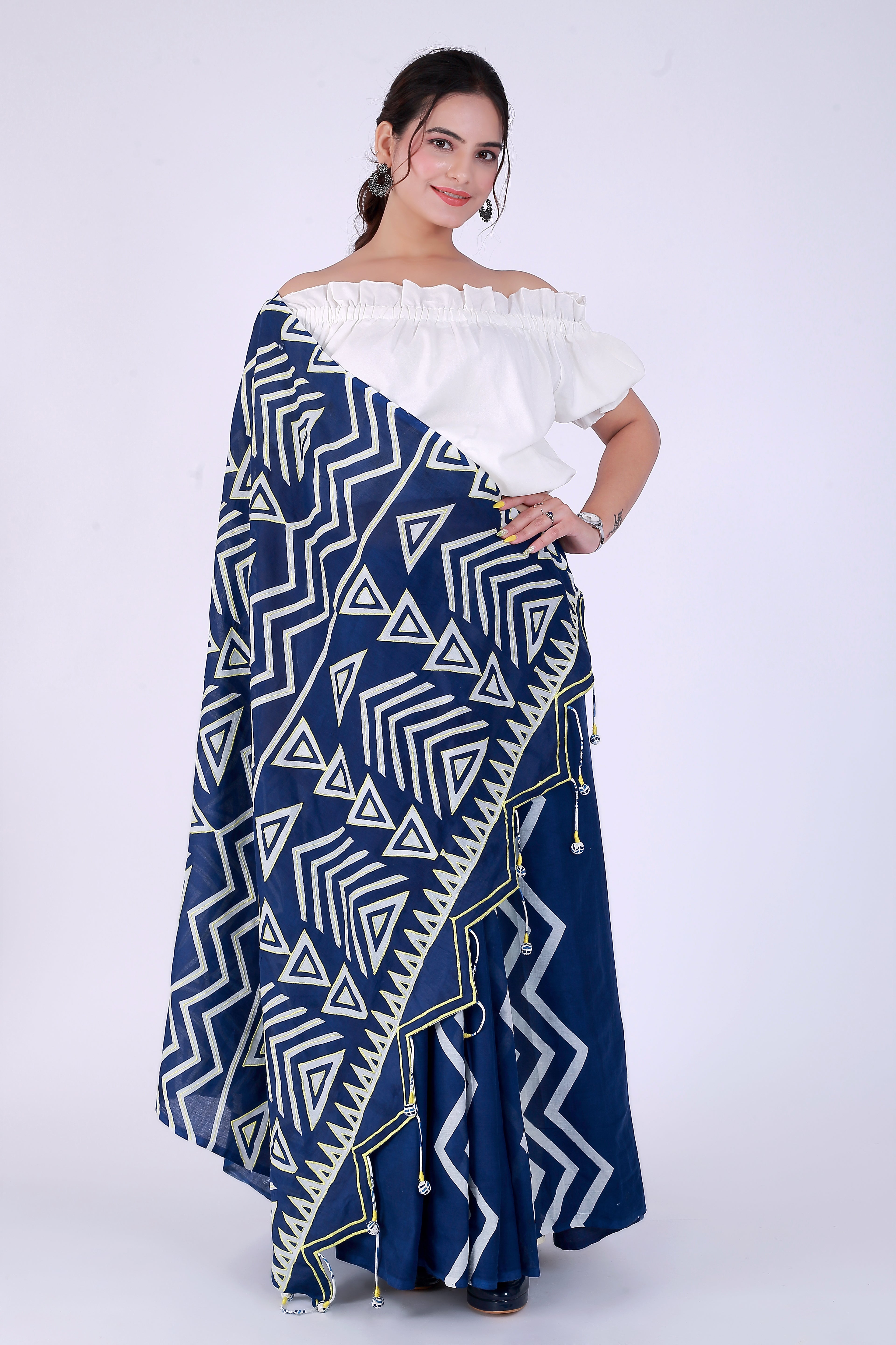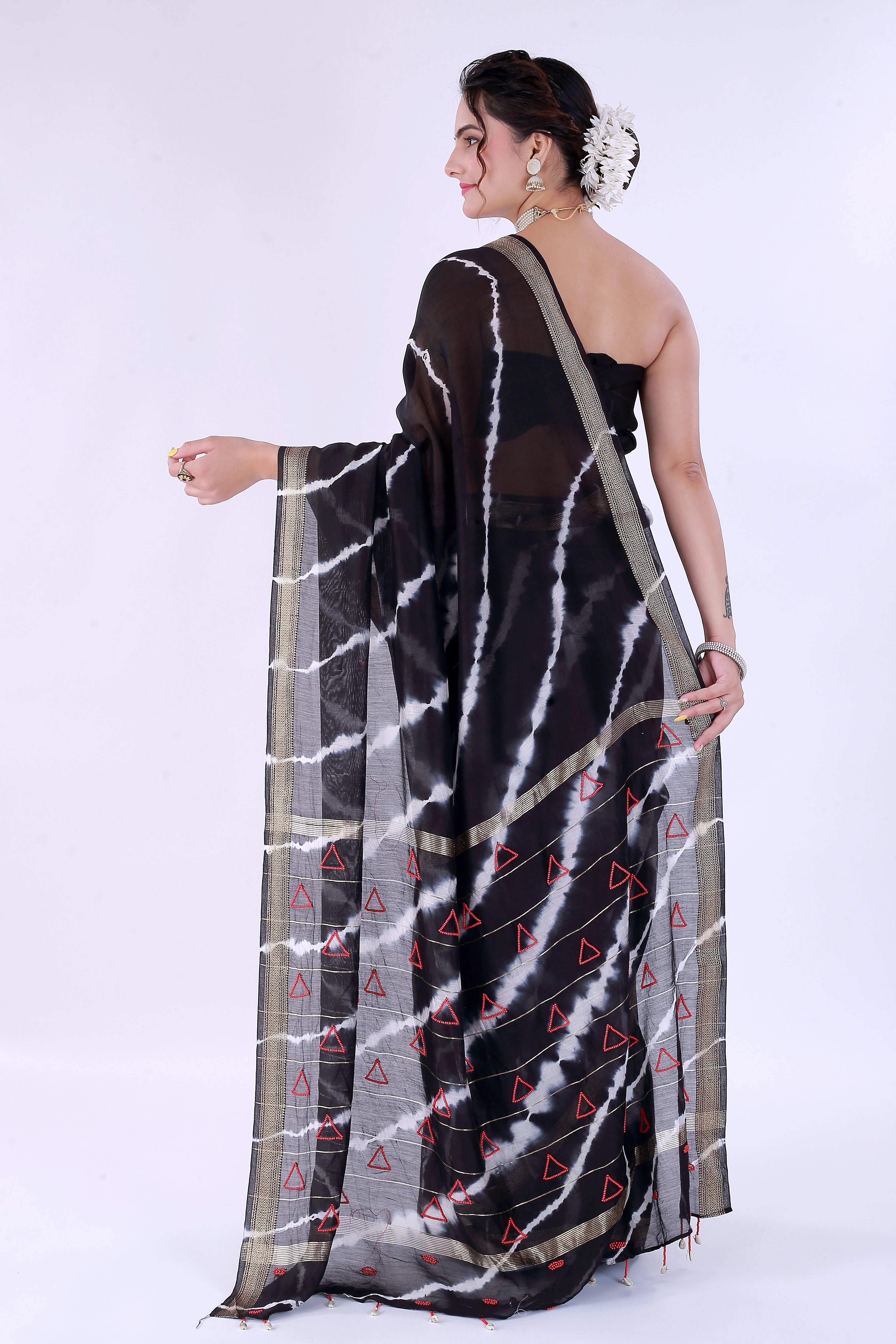The Trikon saree in black combines classic elegance with modern design. It is made from luxurious fabric, detailed with rich... Read more